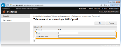 Sähköpostin tai I-faksin vastaanottajan tallentaminen