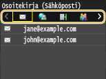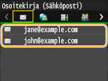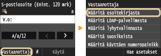 Osoitekirjan avulla voit määrittää vastaanottajan valitsemalla tallennettujen vastaanottajien luettelosta tai etsimällä vastaanottajaa nimellä.