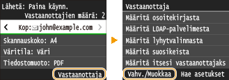 Jaetun kansion asettaminen tallennuspaikaksi Vastaanottajien tallentaminen osoitekirjaan etäkäyttöliittymästä |