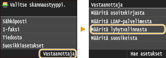 Jaetun kansion asettaminen tallennuspaikaksi Vastaanottajien tallentaminen osoitekirjaan etäkäyttöliittymästä |