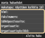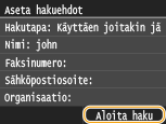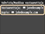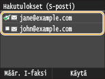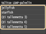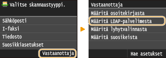 Jos toimistossa on asennettuna LDAP-palvelin, voit määrittää vastaanottajan käyttämällä palvelimessa olevia käyttäjätietoja. Avaa LDAP-palvelin laitteen avulla, etsi asiaankuuluvat käyttäjätiedot ja määrite ne vastaanottajaksi.