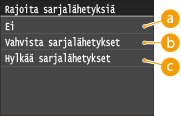 Valitse <Vahvista sarjalähetykset> tai <Hylkää sarjalähetykset>.
