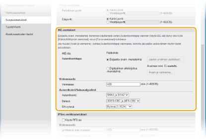 Määritä asetukset [Voimassa] ja [Autentikointi]/[Salaus]/[DH-ryhmä].