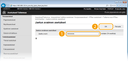 Syötä enintään 24 aakkosnumeerista merkkiä esijaetuksi avaimeksi ja valitse [OK].