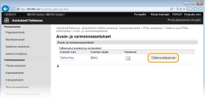 Valitse [Tallenna oletusavain] käytettävän avainparin oikealla puolella.