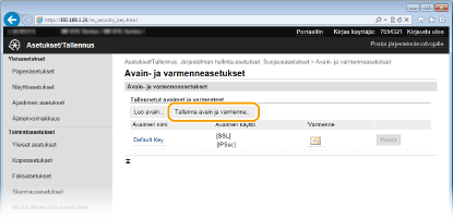 Valitse [Tallenna] tallennettavan avainparin oikealla puolella.