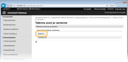 Valitse [Avain- ja varmenneasetukset] avainparin asentamiseksi tai [CA-varmenteen asetukset] CA-varmenteen asentamiseksi.