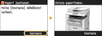 Kun poistat juuttunutta paperia, älä katkaise laitteesta virtaaVirran katkaiseminen poistaa tulostettavana olevat tiedot. Ole erityisen varovainen, kun vastaanotat faksiasiakirjoja.