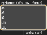Om valt pappersformat inte visas trycker du på <Andra storl.>.
