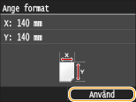 Ange längden på <Y>-sidan och tryck på <Använd>.