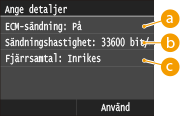 Du kan även ange <ECM-sändning> och <Sändningshastighet> från <Meny>