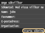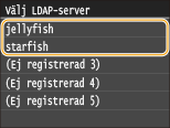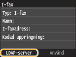 ![]() Om autentiseringsskärmen visas när du klickar på <Starta sökning> anger du användarnamnet på enheten och lösenordet som registrerats i LDAP-servern och sedan trycker du på <Använd>. Registrera LDAP-servrar