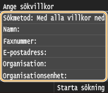 Namn, faxnummer, e-postadresser, organisationsnamn och organisationsenhetsnamn kan användas som sökvillkor vid sökning efter mottagare.