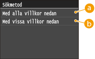![]() <Med alla villkor nedan>Söker och visar de användare som uppfyller alla sökvillkor som har angetts i steg 3 och 4.