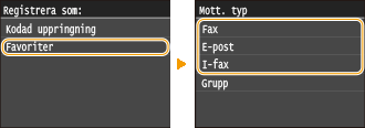<Faxinställningar>. Inställningar gjorda från <Adressbok> är dessutom aktiverade för de detaljerade inställningarna för mottagare som registrerats i adressboken. |