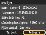 Göra detaljerade inställningar (endast vid registrering för fax)