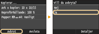 Tryck på <Avbryt> på skärmen som visas vid kopieringen