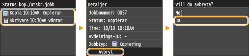 Kontrollera statusen för kopieringsjobbet innan du avbryter