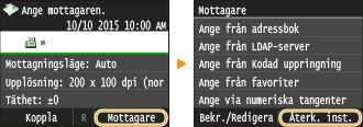 / för att växla mellan mottagare du angett. Visa den mottagare som du vill ta bort och tryck på . |