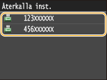 Du kan välja en mottagare bland de tre senaste mottagarna. Om du anger en tidigare använd mottagare ställs samma faxinställningar in som du använde senaste gången du skickade dokument till samma mottagare.
