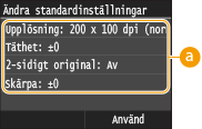 Tryck på det alternativ du vill ställa in och ändra standardvärdet.