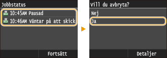 Dokument har skannats och väntar på att utföras. Välj vilket dokument som ska avbrytas.