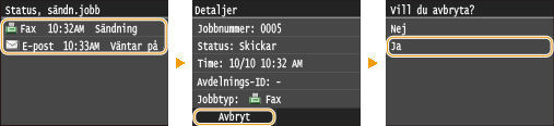 på kontrollpanelen. Du kan även avbryta sändning av fax efter att ha kontrollerat faxstatusen.