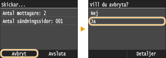 Tryck på <Avbryt> på skärmen under sändningen av fax