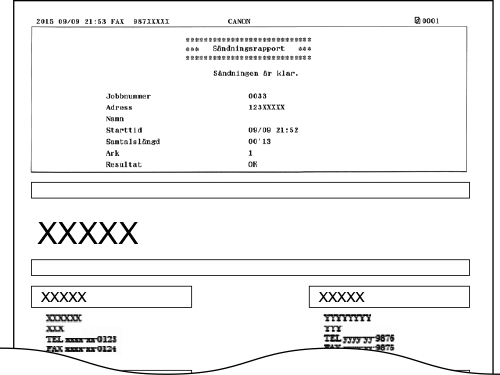 <Faxsändningsrapport> eller <Sändningsrapport för e-post/I-fax/fil>