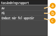 Välj det här alternativet om du bara vill skriva ut en sändningsrapport när ett sändningsfel inträffar.