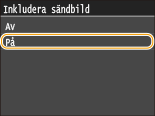 När du väljer <På> eller <Endast när fel uppstår>, kan en viss del av ett faxdokument ingå i rapporten. Tryck på <Inkludera sändbild> för att <På>.