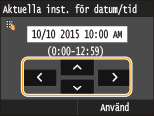 för att ange datum och tid eller växla mellan <AM>/<PM>.