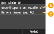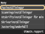 Alla faxinställningar visas med korta beskrivningar. Standardinställningarna markeras med ett kors (