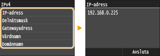 <Nätverksinformation>  <IPv4>  Välj inställningen som ska visas  Kontrollera inställningarna