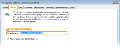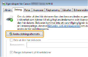 Använda Hantering av avdelnings-ID med en utskriftsserver"Canon Driver Information Assist Service" måste läggas till när skrivardrivrutinen installeras. Se "MF Driver Installation Guide (Installationshandbok för MF-drivrutin)" för mer ingående information.