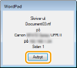 Avbryta från ett programI vissa program visas nedanstående skärm. Du kan avbryta utskriften genom att klicka på [Avbryt].