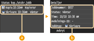 Om <Visa jobblogg> är inställt på <Av> kan du inte kontrollera utskriftsloggar. Visa jobblogg