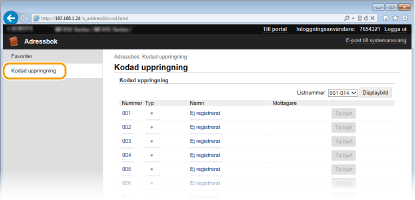 Du kan ta bort en registrerad mottagare genom att klicka på motsvarande knapp för [Ta bort].
