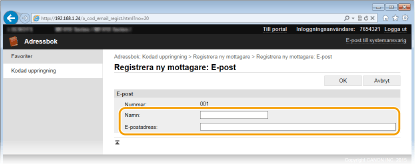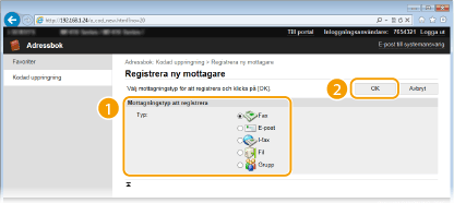 Registrera mottagare i adressboken från fjärranvändargränssnittet
