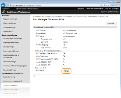 [Inställningar för e-post/I-fax].![]() |