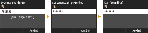 ![]() På MF419x / MF418x, är enligt standard systemhanterar-ID och PIN-kod "7654321". Vi rekommenderar att du ändrar den här inställningen för högre säkerhet.