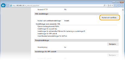 Klicka på [Nyckel och certifikat] i [TLS-inställningar].