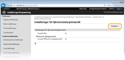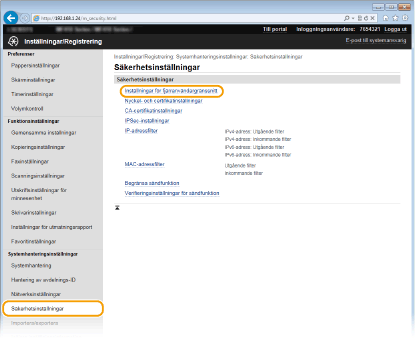 Klicka på [Säkerhetsinställningar] [Inställningar för fjärranvändargränssnitt].