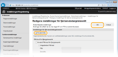 Starta Fjärranvändargränssnittet och logga in i systemansvarigsläge. Starta Fjärranvändargränssnittet