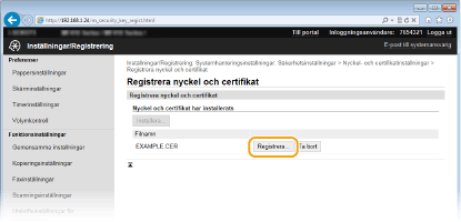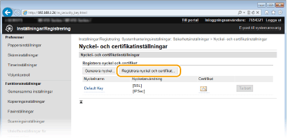 Klicka på [Registrera nyckel och certifikat] eller [Registrera CA-certifikat].
