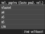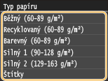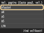 Výše uvedená obrazovka nastavení se po vložení papíru nezobrazíPokud do víceúčelové přihrádky vkládáte stále stejný papír, můžete nastavení papíru přeskočit tím, že nastavíte tuto velikost a typ papíru jako výchozí. Pokud je však nastavena výchozí velikost a typ papíru, obrazovka nastavení se nezobrazuje. Chcete-li, aby se obrazovka zobrazovala, vyberte pro položku <Určit při vkládání papíru> (Registrace výchozího nastavení papíru pro víceúčelovou přihrádku).