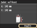 / nebo číselných tlačítek zadejte délku strany <X> a klepněte na tlačítko <Použít>.![]() |