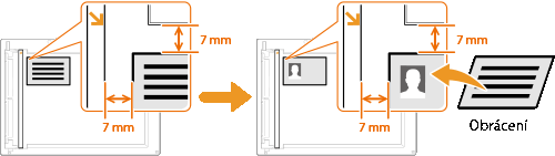 Pomocí možnosti <Kopie průkazu> lze zkopírovat přední i zadní stranu průkazu na jednu stranu stránky. Tato funkce je užitečná při kopírování řidičského či občanského průkazu.