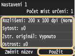 Zkontrolujte podrobnosti nastavení, která chcete uložit, a klepněte na tlačítko <Použít>.