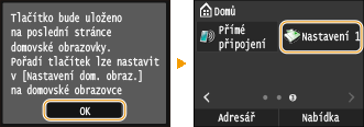 Pokud vyberete možnost <Ano>, zobrazí se zpráva. Zprávu si přečtěte a potom klepněte na tlačítko <OK>. Kombinace uložených nastavení bude přidána na obrazovku Domů jako tlačítko zástupce.